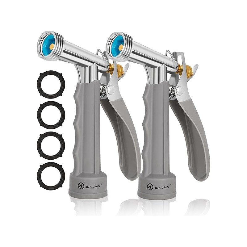 AUTOMAN Full Size Garden Hose Nozzle 2 Pack, High Pressure Pistol Grip Water Nozzle Sprayer with Threaded Front, Adjustable Spray Water Flow for Washing Car, Cleaning Ground, Watering Plants
