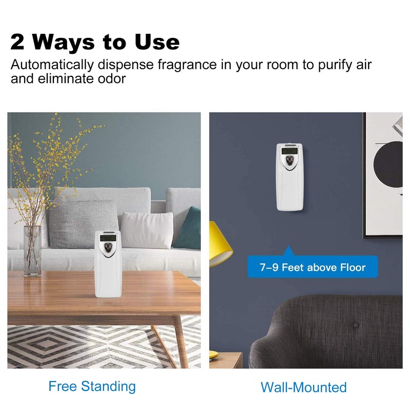 - WITH TIMER FUNCTION: Automatic fragrance dispenser, with timer function, which can set and adjust the frequency and interval of fragrance spraying.