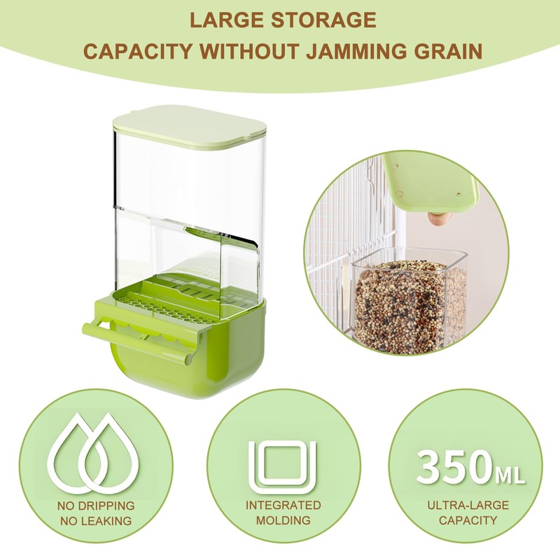 - Automatic feeding design: bird food size 18 x 9.2 x 9.3 cm. Large capacity bird cage feeding device special curved automatic sliding structure, automatic feeding, not stuck.