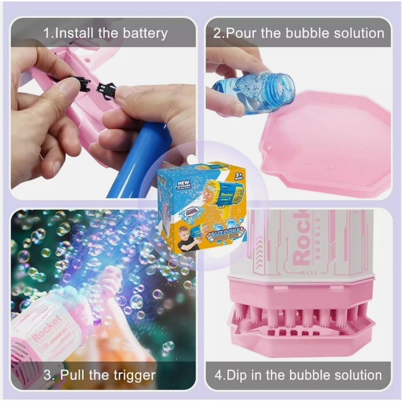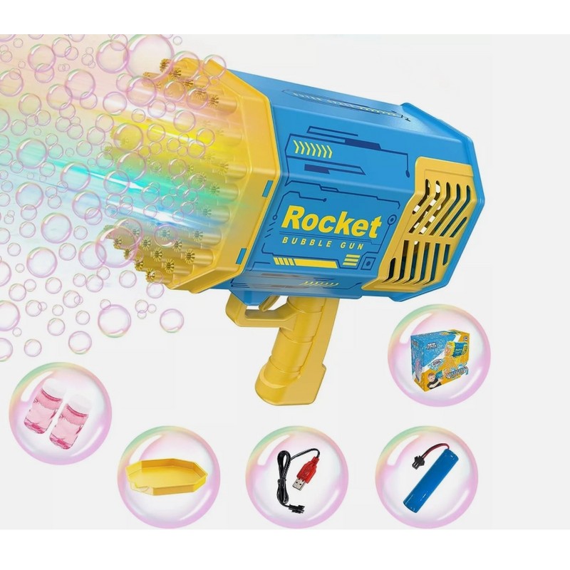 Automatic Bubble Maker Gun 69 Hole Bubble Machine Gun with Colorful Lights BLUE