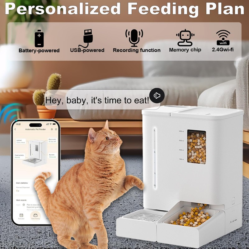 • Smart Control & Convenient Management: Control pet feeding via an app, set feeding times and portions, view feeding records in real-time, and receive notifications for any issues to ensure pets are fed on schedule.
