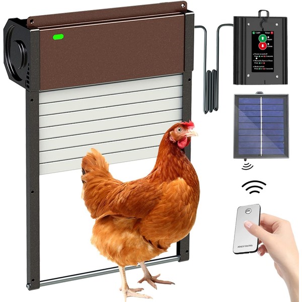 Automatic Chicken Coop Door Solar Powered - Opener Aluminum Auto Chicken Doors with Light Sensor, Timer Mode, Remote Control for Poultry Weatherproof Large