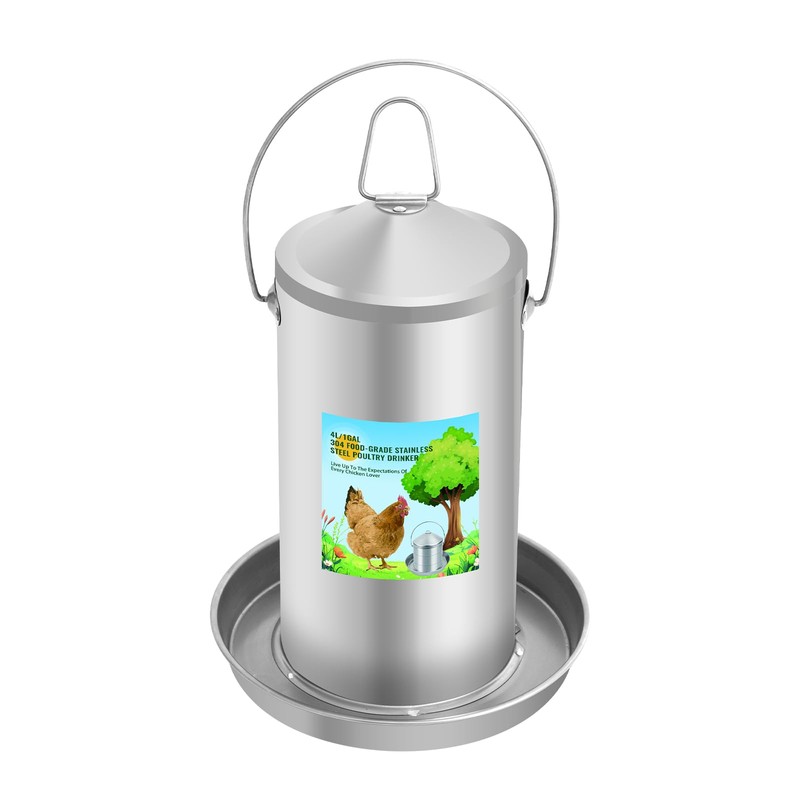 Automatic Chicken Waterer 4L/1.0Gal, 304 Food Grade Stainless Steel Heavy Duty Reliable Long-Lasting Poultry Waterer with Handle, High Strength Structure 0.035 Inch Metal Thickness, No Assemble