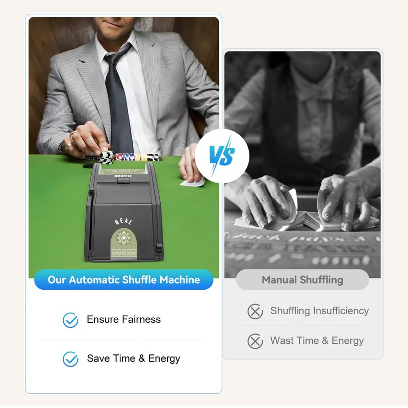 Fast Shuffling: Compared with manual shuffling, the automatic one can shuffle faster with high efficiency.