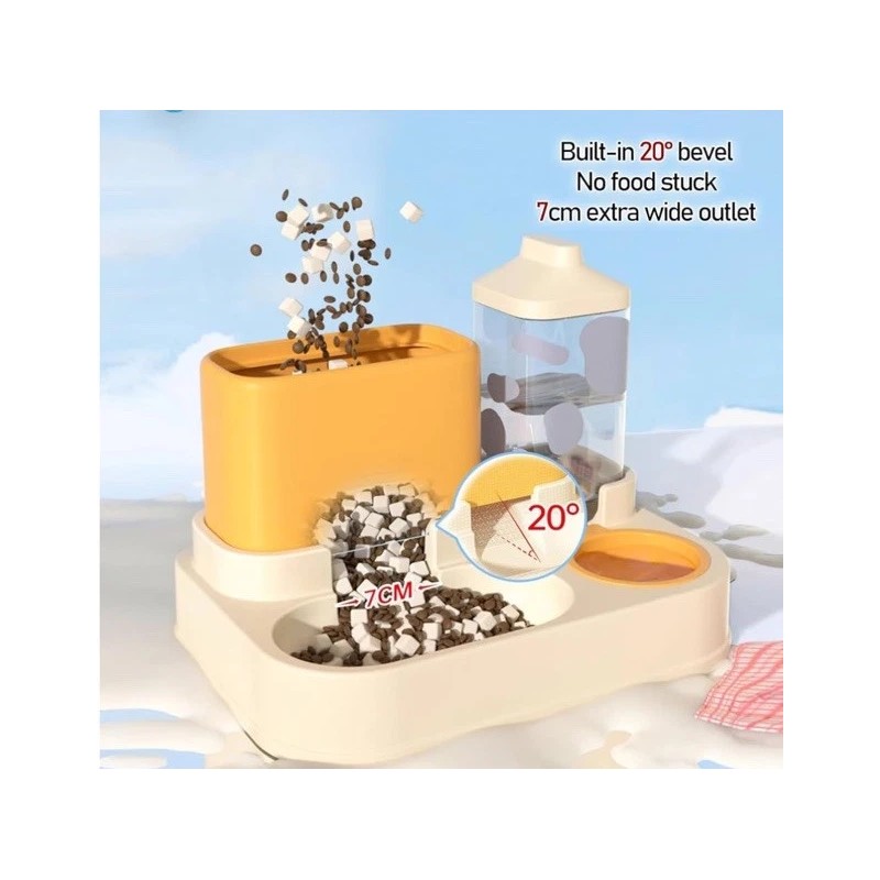 With a sleek and modern design, this pet food dispenser is a great addition to any home. The feeder is made from high-quality materials to ensure that it's durable and long-lasting. The water fountain is easy to clean and refill, making it a convenient option for busy pet owners. Whether you're looking for a practical solution for keeping your pet hydrated or want to ensure that your pet stays healthy and happy, this automatic feeder dog cat food bowl with a water fountain is the perfect choice.
