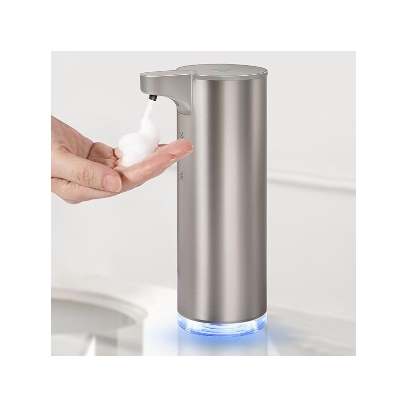 Automatic Foaming Soap Dispenser, Rechargeable Touchless Foam Hand Soap Dispenser for Bathroom, Stainless Steel Soap Pump for Kitchen, Water-Resistant, Xmas Gift 9oz