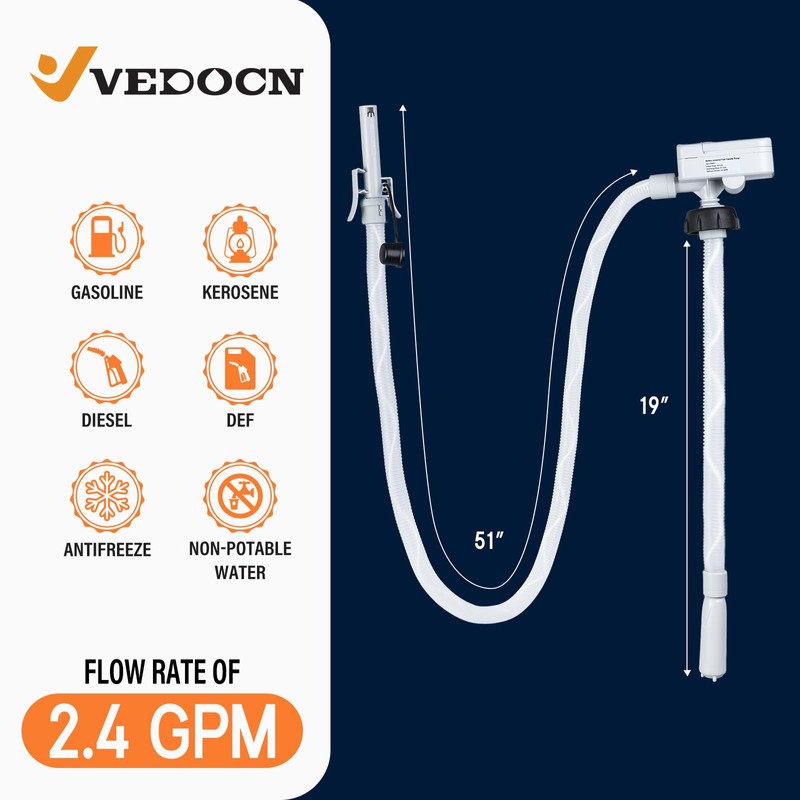 With a discharge hose length of 51 inches and an intake hose length of 19 inches, this pump can handle a flow rate of 3.2 GPM (12 LPM). Powered by 4 AA batteries (not included), it provides reliable and consistent performance wherever you need it.