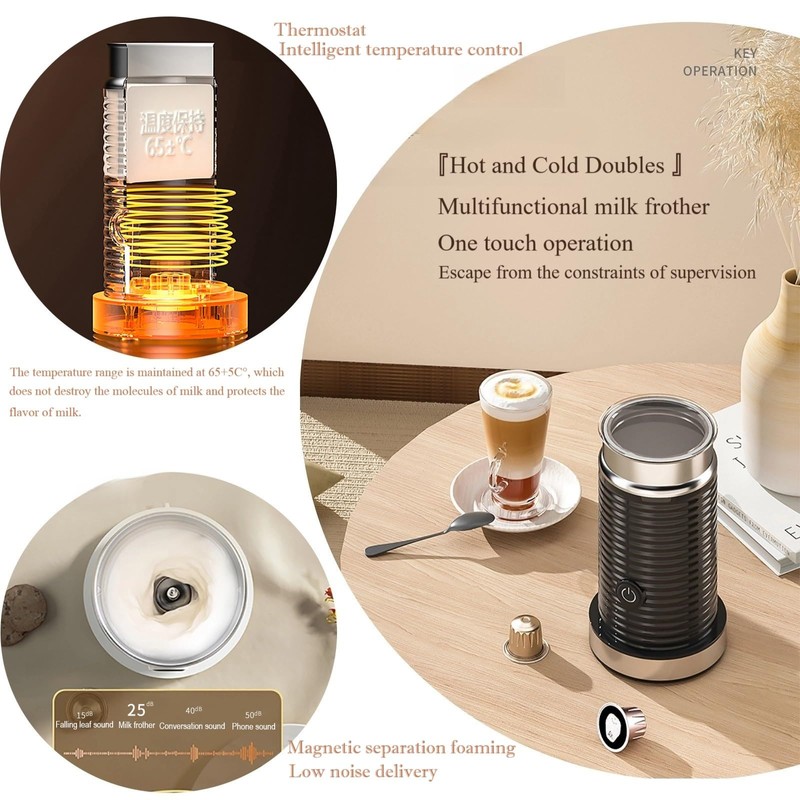 - 【Intelligent Temperature Control】 Hot and Cold Milk Frother temperature range remains at 65°±5°,does not destroy the nutritional content of milk and protects the flavor of milk.