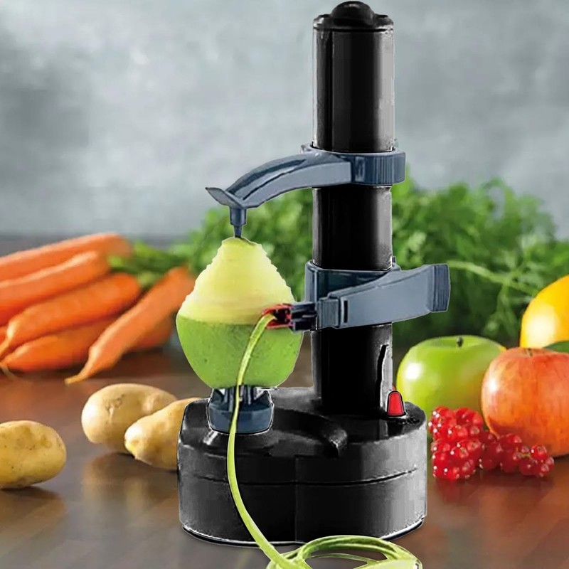 - High Efficiency: Peel fruits and vegetables quickly and easily; just press the red button, hold the fruit or vegetable at the top and bottom, and watch it work efficiently
