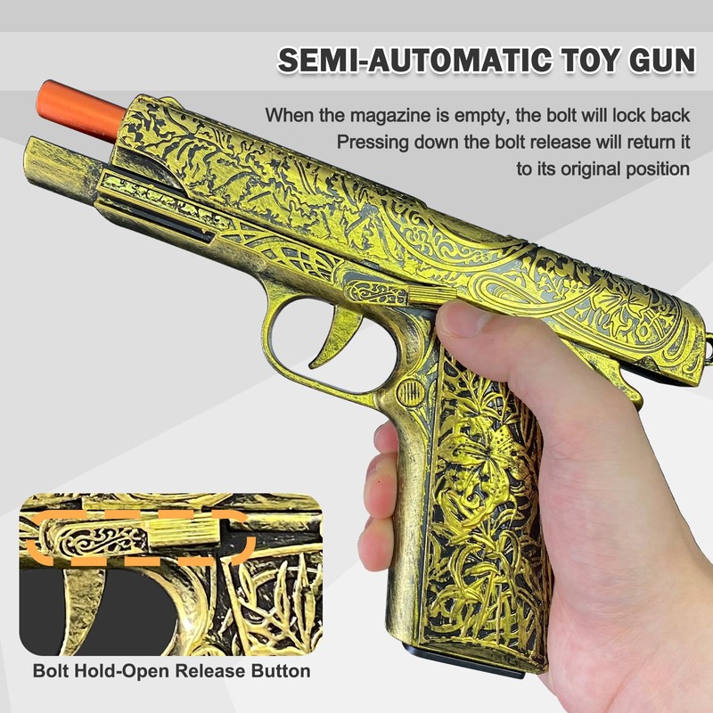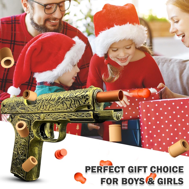 Automatic Shell Ejecting Toy Guns with 120 Soft Bullets, Cool Toy Pistol with Ejecting Shells, Retro Pattern Design Shooting Model Toys Gifts for Boys, Kids and Girls
