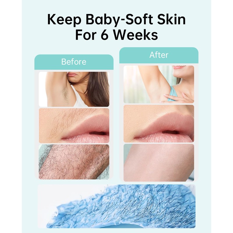 • ๐ŸŽฏ ๐†๐จ๐จ๐ ๐…๐ฅ๐ž๐ฑ๐ข๐›๐ข๐ฅ๐ข๐ญ๐ฒ, ๐–๐š๐ฑ ๐–๐ข๐ฅ๐ฅ ๐๐จ๐ญ ๐๐ซ๐ž๐š๐ค::waxing kit for women includes wax beads ideal for a woman's facial hair and eyebrows, wax beads for the sensitive bikini area, and wax beads for full body use. Effective hair removal for coarse and fine body hair, ensuring hair removal from root to tip and maintaining smooth, hair-free skin for up to 6 weeks. Our wax is flexible, does not break, holds the hair well and achieves 99% hair removal