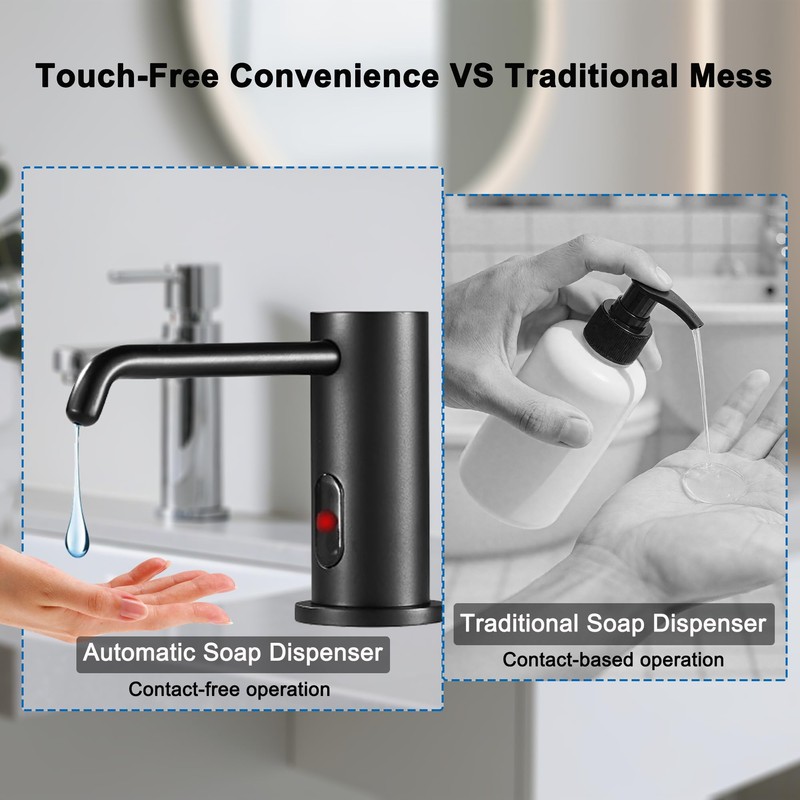 - Automatic Soap Dispenser: Built-in upgraded infrared sensor, this hand soap dispenser can sense and dispense soap accurately when you place your hands under the sensor. Hands-free and touchless features effectively avoid cross infection, make your washing more hygienic and safer. Thanks to its built-in design, the soap dispenser doesn't take up extra space, keeping the sink area tidy