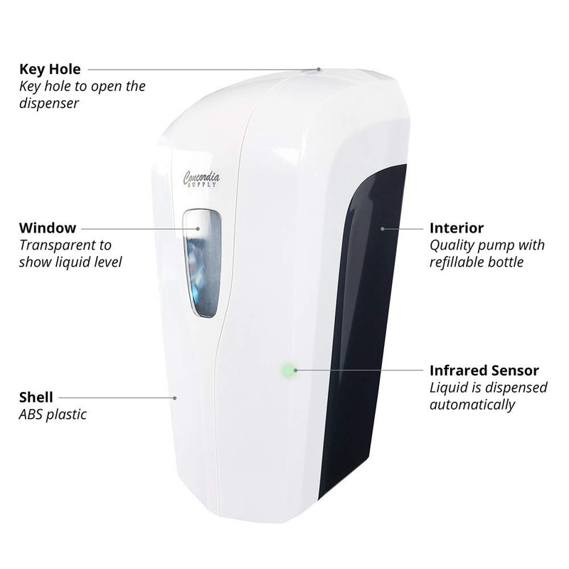- ✔️TOUCHLESS GEL DISPENSER with automatic infrared motion-sensing technology, provides quick sanitizer delivery with a safe, hands-free sterilization system. HIGH CAPACITY DISPENSER - Fill the 1000 ml (33 oz) storage container with your favorite Gel Sanitizer for about 1,000 dispenses per refill. Sanitizing gel not included. Does not work with liquid sanitizer.