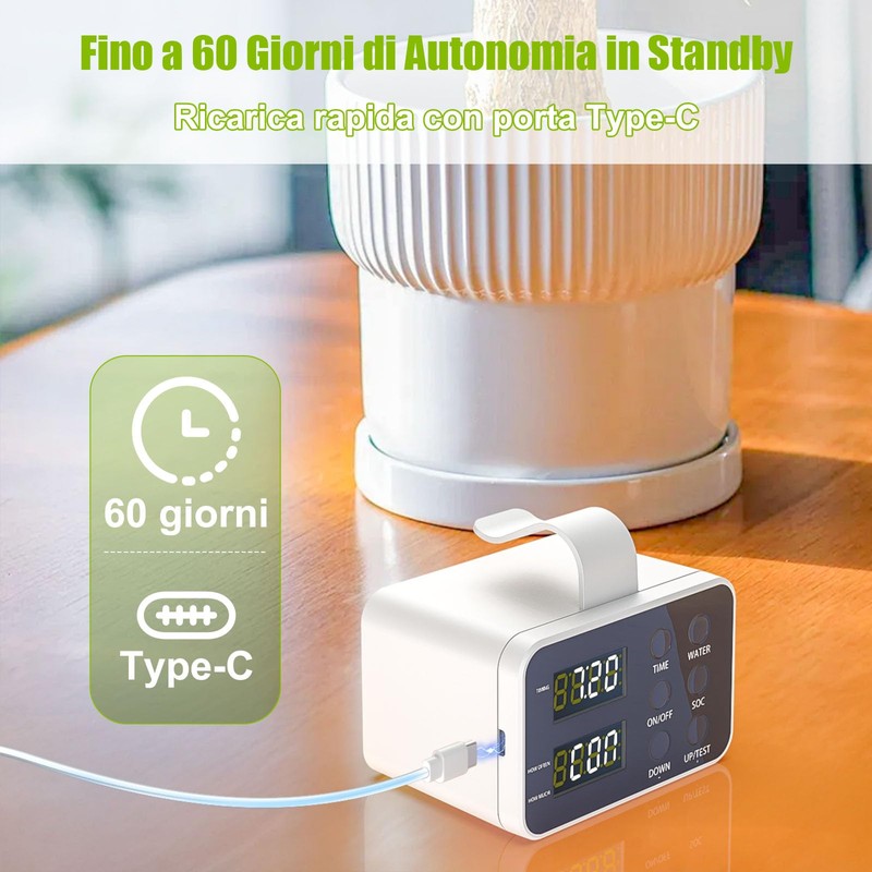 - Intelligent und praktisch: Das automatische Gartenbewässerungssystem verfügt über umfassende Funktionen, wie z. B. eine Warnung bei niedrigem Batteriestand mit Anzeige des Ladezustands, eine Warnung bei Wassermangel und einen Pumpenschutz gegen leeren Betrieb, um eine Beschädigung des Geräts zu vermeiden. Es ist ein wertvoller Helfer bei der Pflege von Topfpflanzen