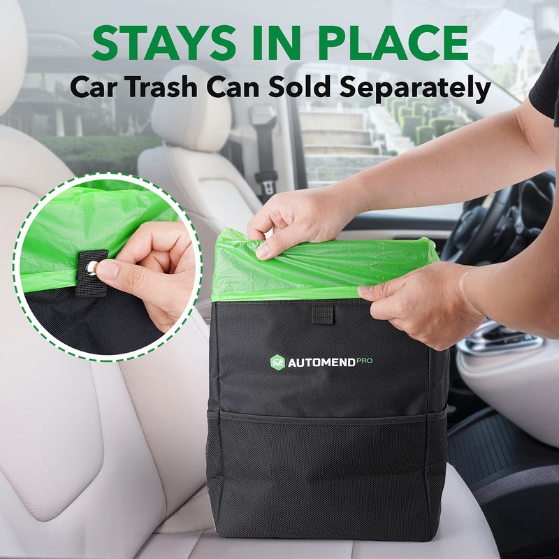 - FITS AUTOMEND PRO CAR TRASH CANS PERFECTLY - Our trash for car bags are specifically designed to fit the Automend Pro Car Saver, so you can be sure there won't be any tight squeezes or messy overhangs. Instead of letting litter pile up or liquids spill inside your car trash can for women and men, simply insert a liner and say hello to quick and easy rubbish removal. Make cleaning out your Automend Pro automotive garbage cans a thing of the past with our car organizer for front seat.