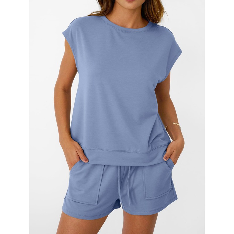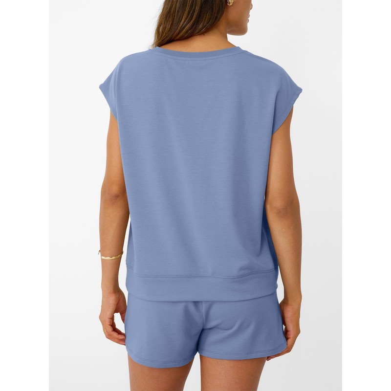 AUTOMET Womens Lounge Two 2 piece Sets Summer Outfits 2025 Loungewear Matching Beach Vacation Clothes Sweatsuits Sweat Pajamas Pjs Romper Top Shorts Fashion Trendy Travel Teen Clothing Dusty Blue M
