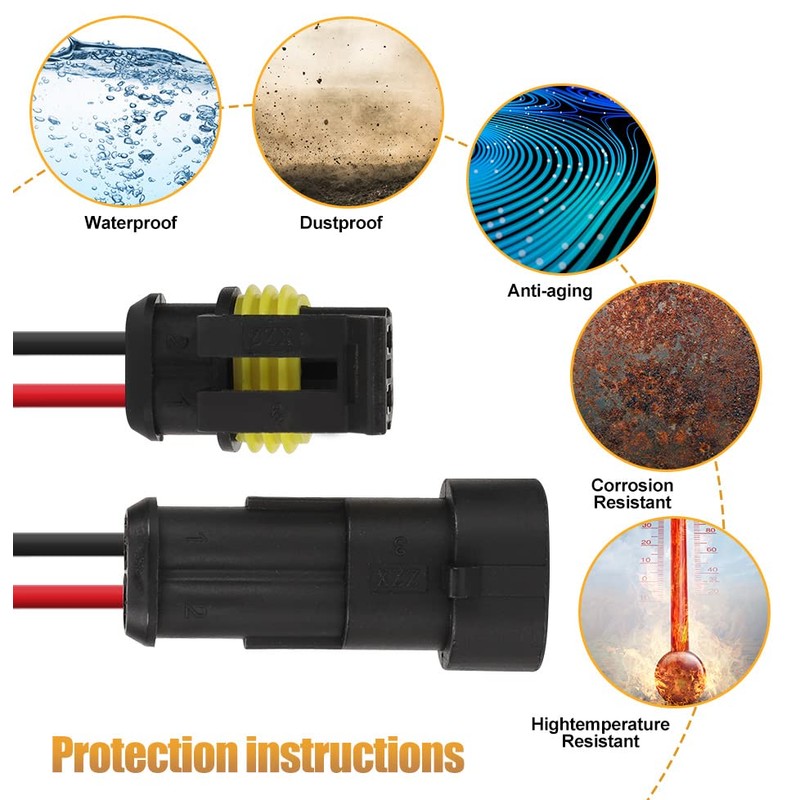 - Material specifications: 2 pin male and female 16AWG waterproof connector, made of high-quality environmentally materials, with high chemical stability, conductivity, oxidation resistance, dustproof, waterproof and safety.