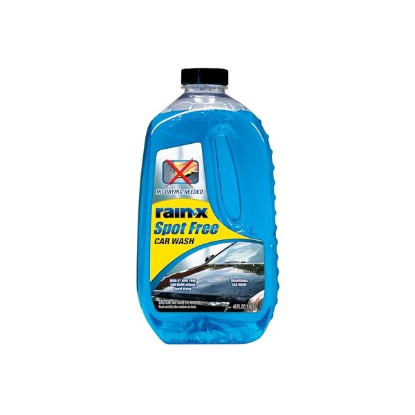 Rain-X Spot Free Car Wash is a specially formulated car wash that leaves a spot free shine without the need of hand drying. This car wash contains a unique blend of rinsing polymers, causing water to sheet off the vehicle for fast air drying. No towel drying needed! Wash, rinse, air dry and go - car washing has never been so convenient. Directions - Hose off heavy dirt and debris from the vehicle. Add 1oz of Rain-X Spot Free Car Wash to an empty bucket and mix with 1 gallon of water. Apply soapy water to a portion of the vehicles surface using a clean wash mitt, sponge or 100% cotton cloth. Rinse off with clear water thoroughly. Watch the water sheet off and dry spot free before your eyes. Always use a fresh, dry cloth when drying your vehicle. Instead of heading to the car wash, this works as the perfect concentrated, high foaming spot-free car wash with no need for additional waxing. Drivers have trusted Rain-X for superior car cleaning products, giving car owners the confidence to do it themselves and get professional results.