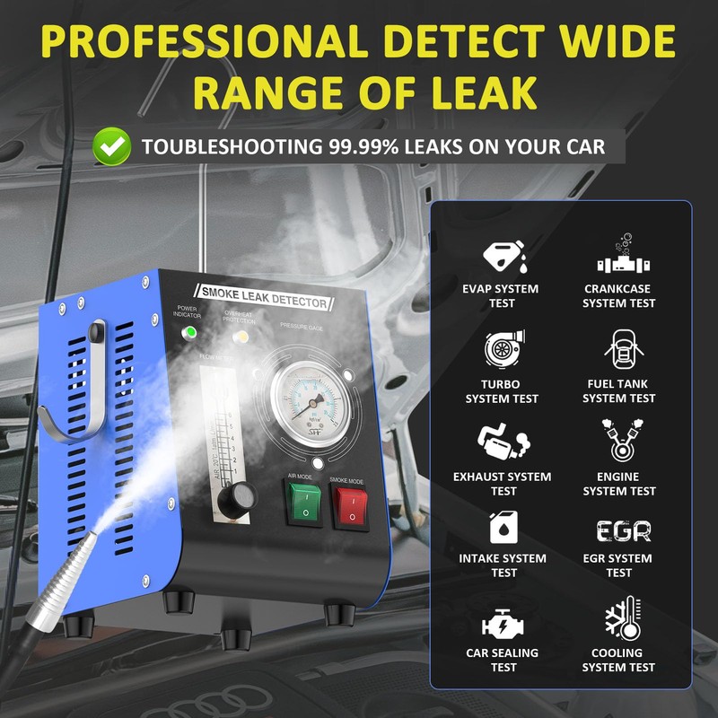 Automotive Smoke Machine, Professional Leak Detector Built-in Air Pump Flow Meter 19PSI Leak Diagnostic Tester Tool Unit Kit 12V EVAP Dual Mode for All Vehicles Pipe Systems, ATV, Boat, Motorcycle