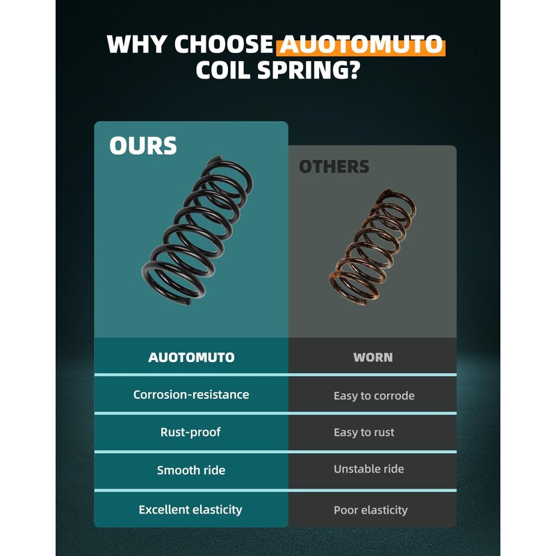 - Advantages & Function - Manufactured with first class steels. Our premium quality coil springs with the best performance are engineered for a superior fit. Reduce the vibration caused by the road surface to improve the driving stability and give drivers a sense of comfort and stability