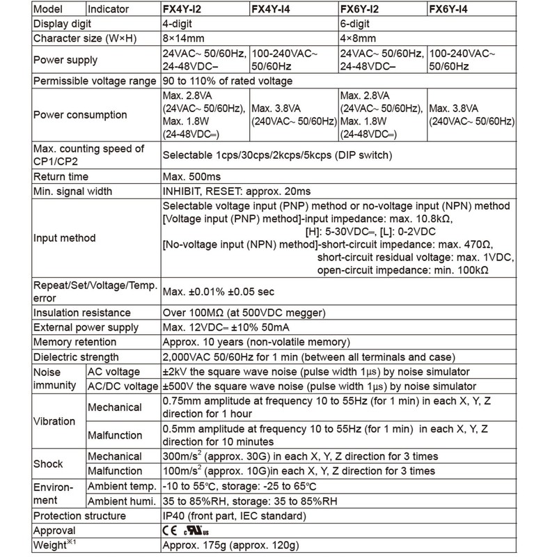 The FXY series is available in 4-digit and 6-digit models in standard DIN size W 72 x H 36 mm.