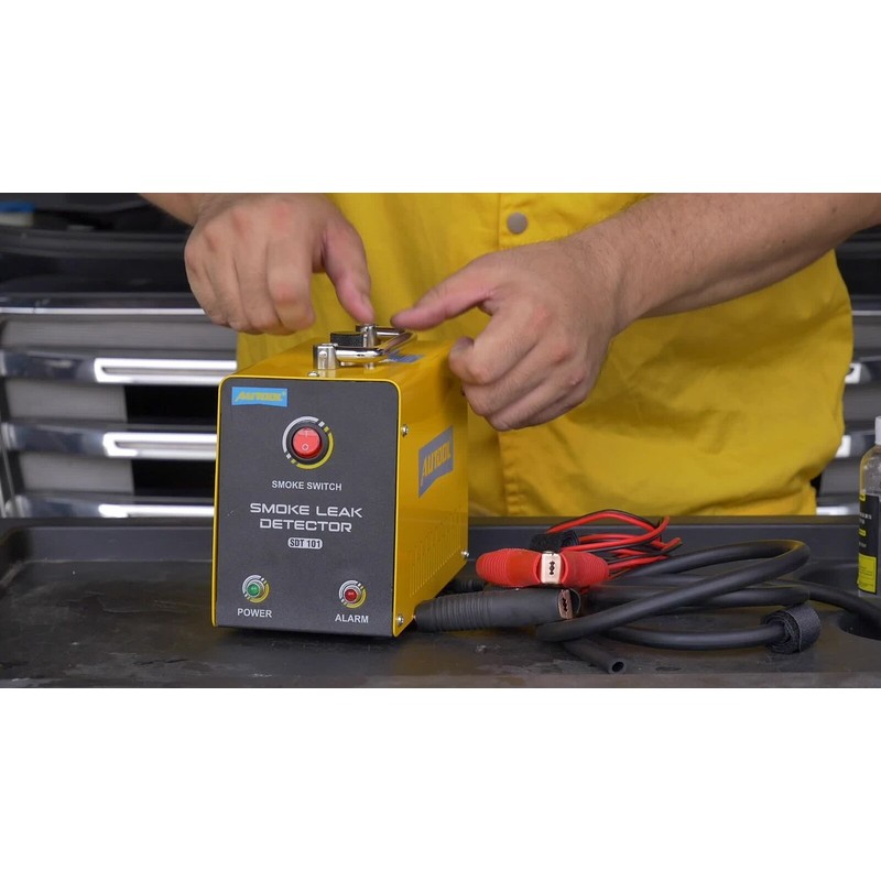 AUTOOL SDT101 Automotive Smoke Leak Detector, it can help you quickly diagnose pipeline leaks, through an external air source can output smoke in a few seconds, built-in regulator can output the standard EVAP system test pressure of 32mbar, even the smallest leak can be detected. Widely used in all automotive piping systems, crankcase systems, oil seal systems, air intake and exhaust systems, cooling systems tank systems, etc.