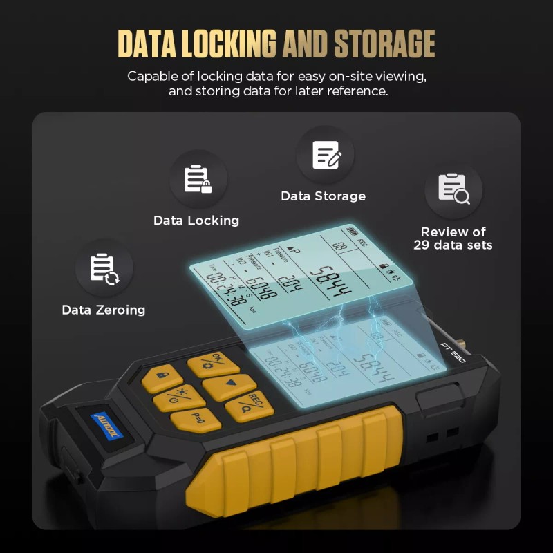 AUTOOL Digital Manometer Dual Port Differential Air Pressure HVAC Gas Test Meter PT520