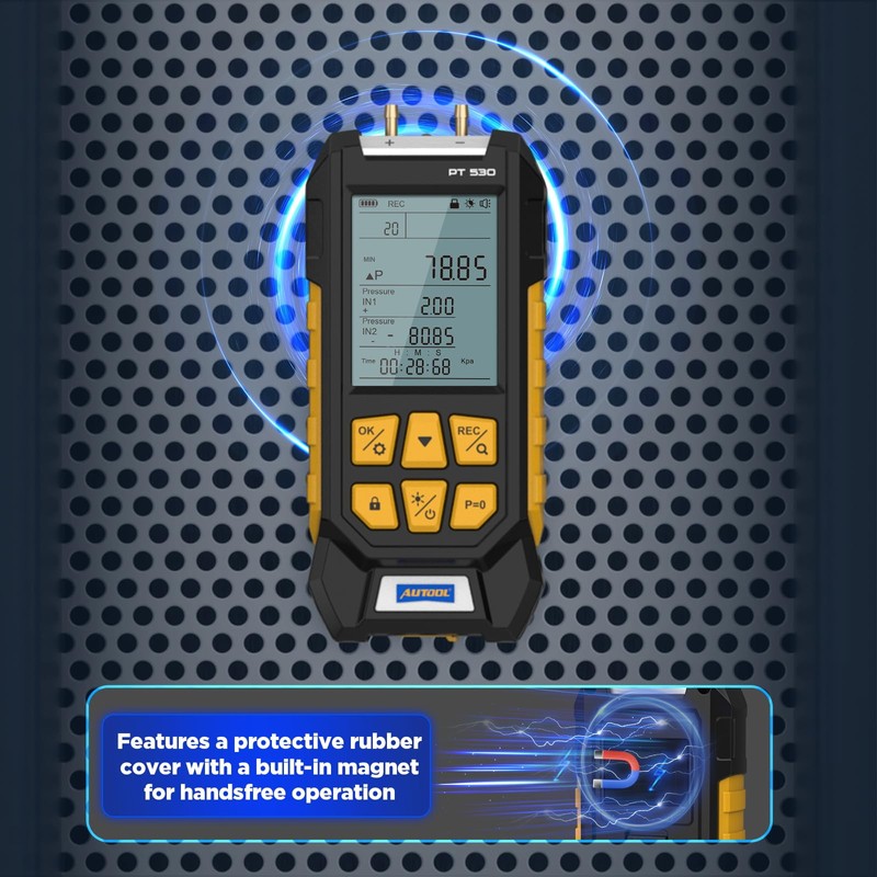 • 【Wide Application Range】The gas pressure tester can be used for intake manifold test, brake booster test, crankcase test, and also for oil, water, air, and gas pressure measurement. This dual port manometer also includes a protective rubber cover with a built-in magnet for handsfree operation.
