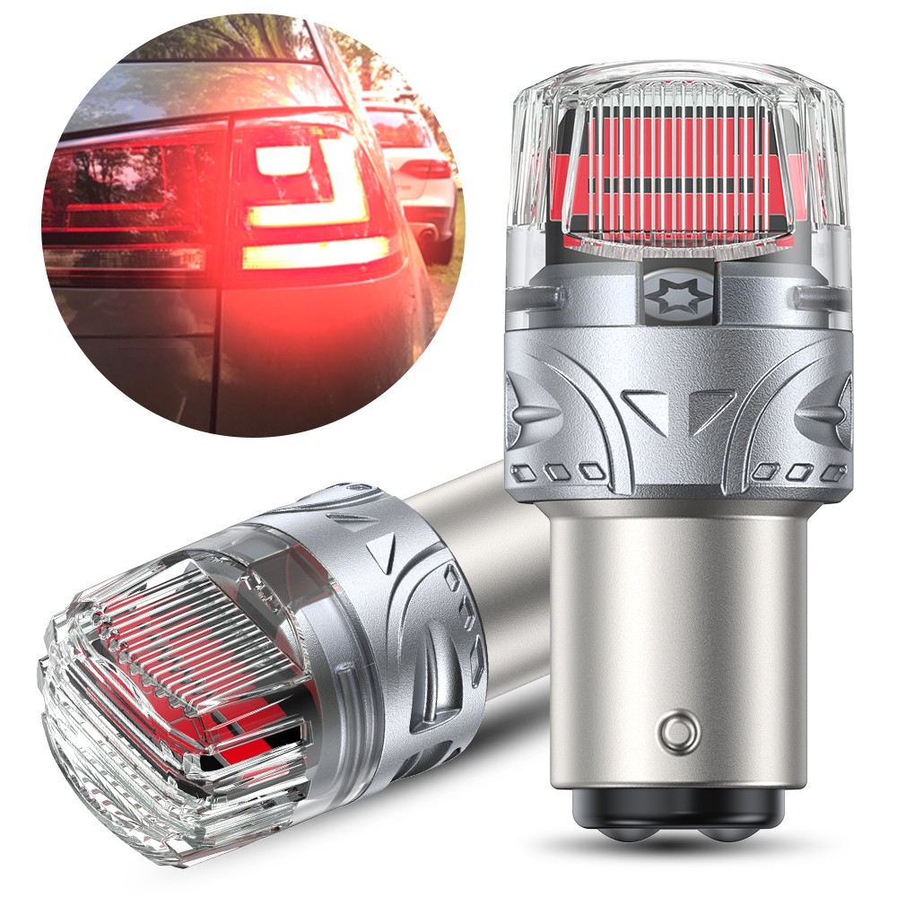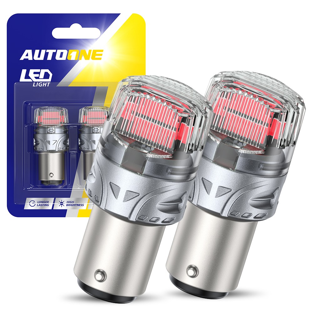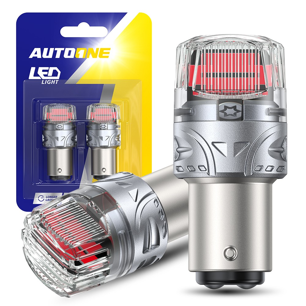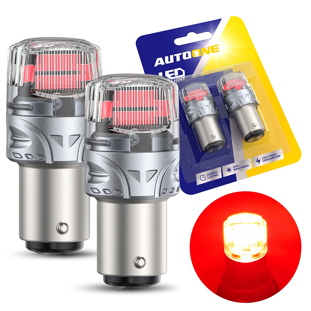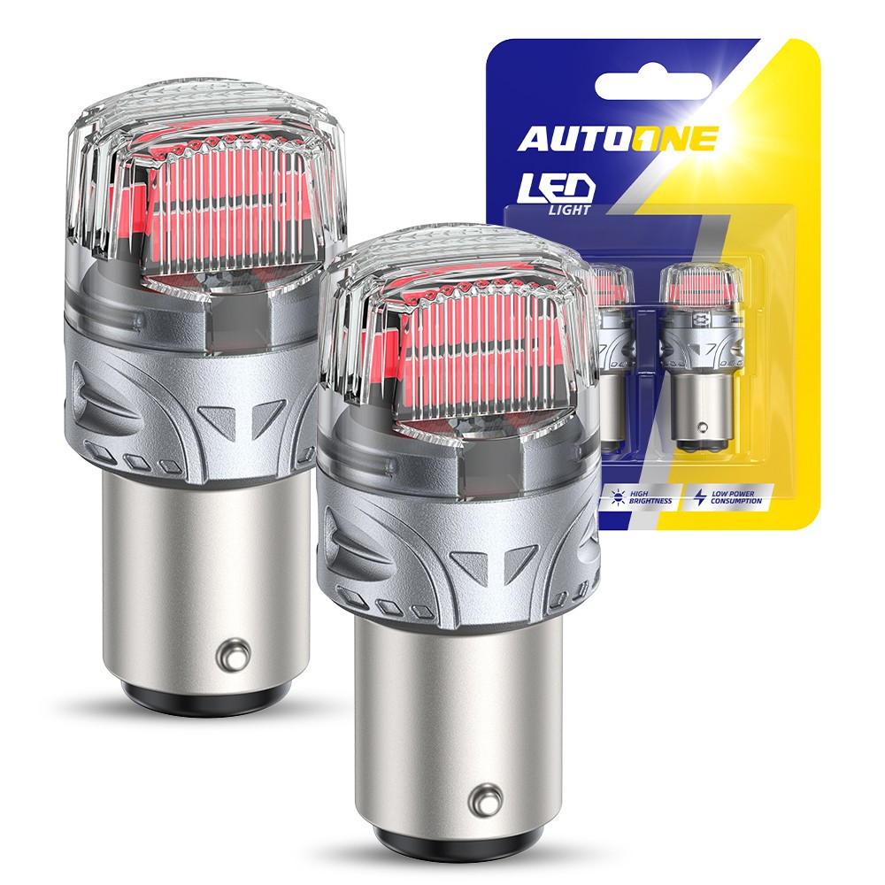 AUTOONE BRS Series 1157 Red Brake Light Bulbs Features: *Even 360° Lighting No dark spots or shadow areas! With 16 Red LEDs chips, AUTOONE BRS Series 1157 bulbs light up to keep your car looking sharp and modern, ensuring other drivers can see you clearly and keeping you safe on the road. *Crisp, Reliable Brightness Three times brighter than original halogen bulbs, AUTOONE BRS Series bulbs cut through fog or dim conditions for better safety and visibility. The durable, clear cover shields the lights from dirt or bumps and protects LEDs and components, staying bright after long-term use. Perfect for serving as brake lights. *Stays Cool, Lasts Longer The sleek aluminum body helps heat dissipate quickly, which keeps bulbs running cool, energy-saving and reliable. No more worrying about overheating thanks to consistent performance. *Built to Stick Around With Constant Current Circuit Design and tough construction, 1157 bulbs are designed to last up to 50,000 hours. Say goodbye to frequent replacement! *Plug-and-Play No special tools or electrical skills needed! Built-in intelligent IC driver and the non-polarity design makes you can install 1157 bulbs in minutes, just plug and play directly. Made of original halogen light specs, perfect match your vehicle.