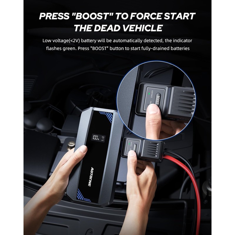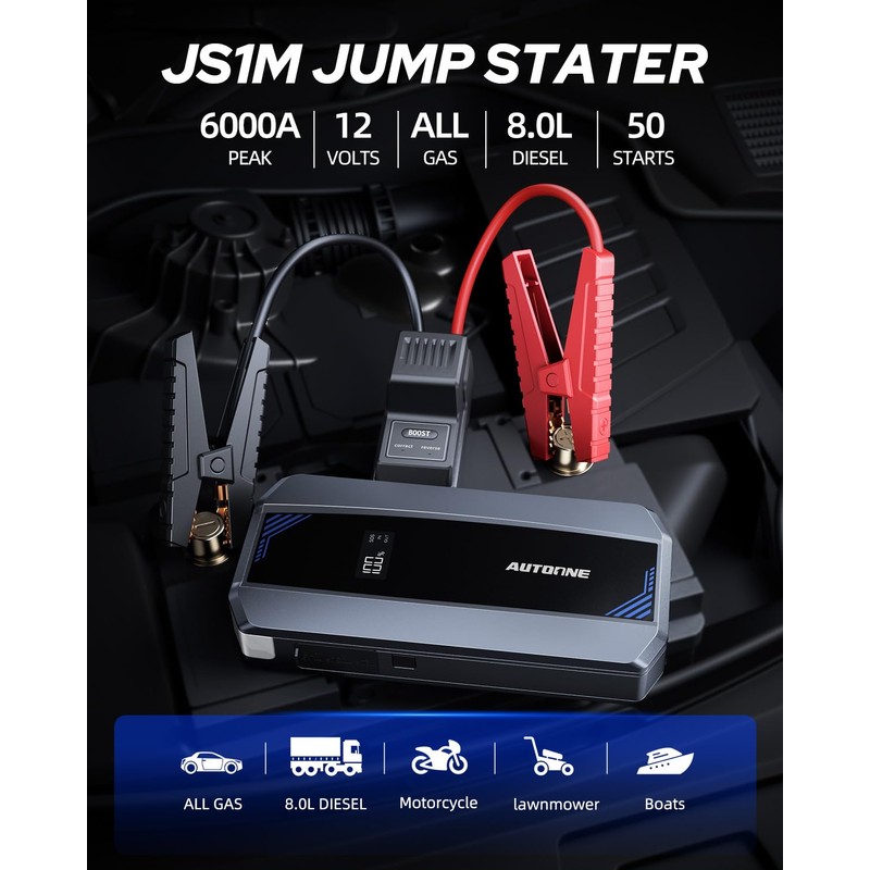 AUTOONE Car Jump Starter 6000A Battery Booster, Portable Battery Pack for All Gas 10L Diesel, 12V Jump Box with Smart Jumper Cable for Car Battery, Vehicle Lithium Starter, LCD Display, w/LED Light