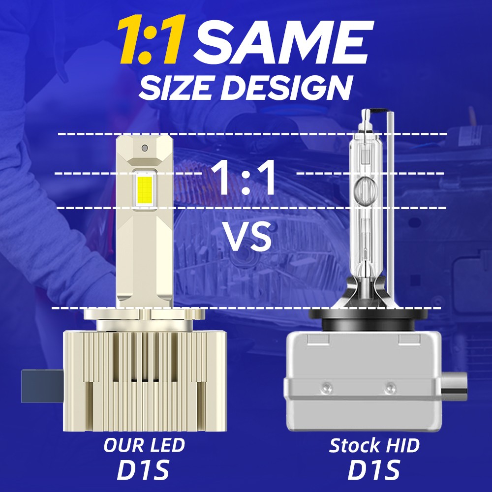 About this item ??600% Brighter??Equipped with superior ZES chips, fog light bulbs deliver an incredible 700% brightness improvement. With 48,000 LM output and 360° lighting, they produce vivid and clear light without dark spots or shadow, significantly increasing your visibility on the road. ??Optimal and Secure Beam??Our AUTOONE D1S headlight bulbs provide a consistent beam pattern with halogen bulbs, ensuring a perfect light shape and concentrated brightness for enhanced visibility. ??Easy Installation??Hassle-free installation without the need for external drivers or wire harnesses. The integrated EMC system reduces the chance of radio interference and error codes in 99% of vehicles. Designed to perfectly fit your original bulbs' housing, simply plug and play for a quick and easy upgrade. ??Super Long Lifespan??D1S headlight / fog light built in 12,000RPM high-speed cooling fan to provide super cooling ability, which ensures continuous lighting for more than 50000 hour. ??99% CANbus Ready??Built-in anti-flicker CANbus unit, D1S LED headlights are compatible with 99% of vehicles’ systems, no polarity, no radio interference, and error-free. Some sensitive models may require resistors