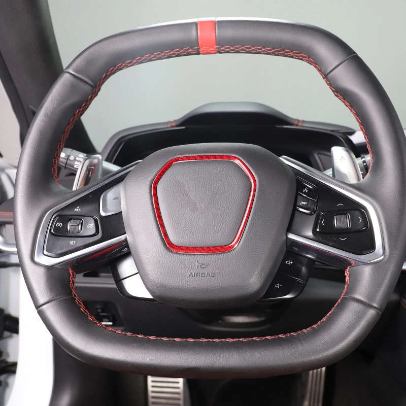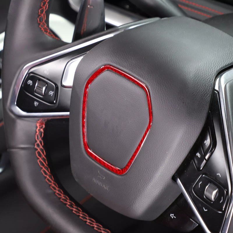autopart2021 Red Carbon Fiber Steering Wheel Emblem Trim Frame For Corvette C8 2020-2025 US
