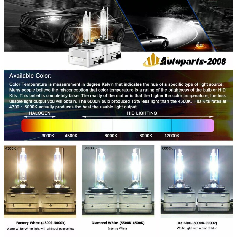 Package Included : 2 pieces 6000k D1S/D1R/D1C HID bulbs