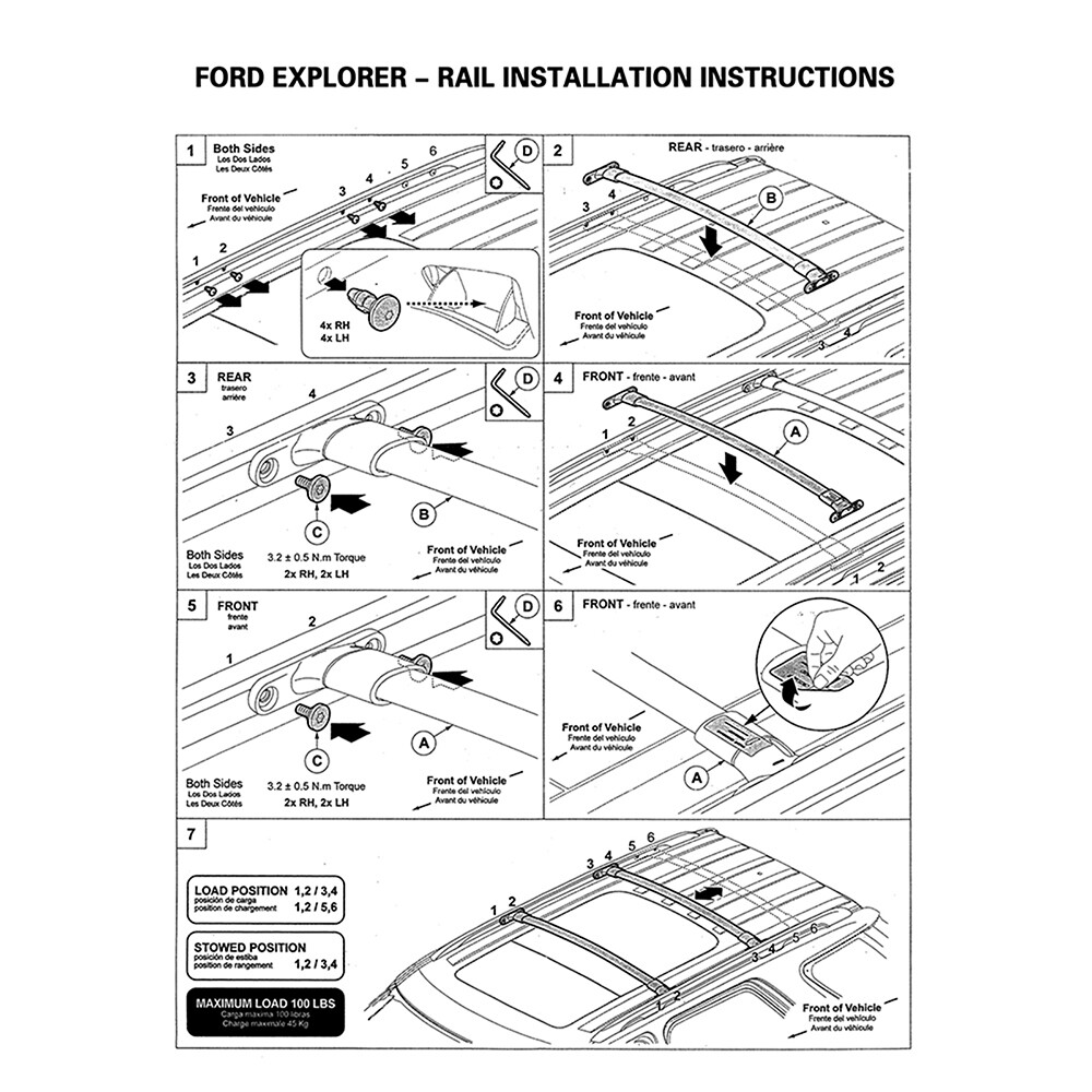 autoparts-depot 3pcs Black Kayak For 2016-2018 Ford Explorer Luggage Bar + Roof Rack Carrier Top