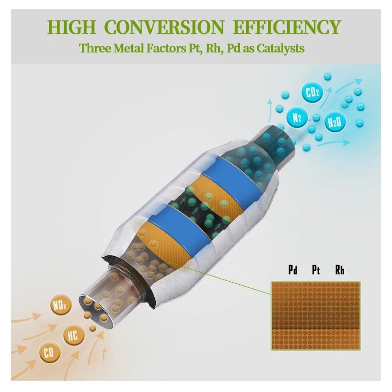 Feature It is resistant to thermal shock and cracking, long service life. It is highly corrosion and wears resistant. The main function is to convert toxic gases, pollutants to harmless gases, helps to purify treat car exhaust. By using, it can help to improve exhaust gas velocity, save horsepower and torque. Great emissions control, high efficiency and work efficiently. EPA OBD-II Approved.