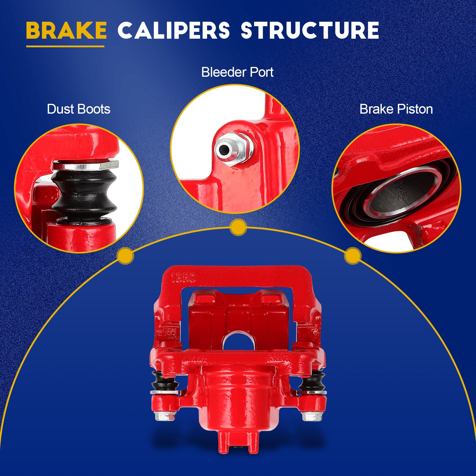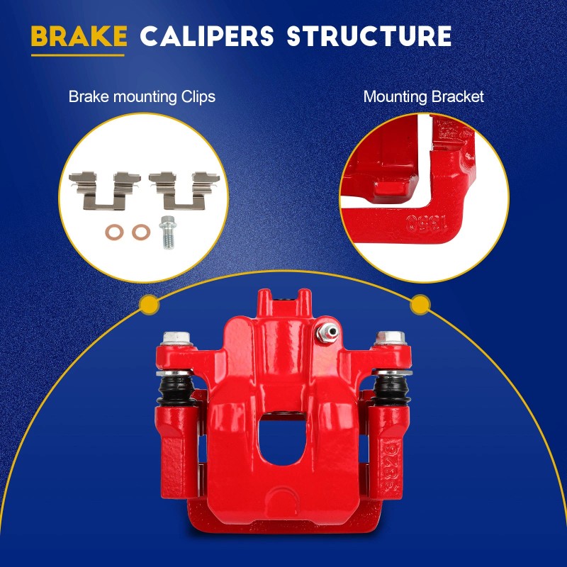 Items Specification: OE/OEM Part Number:19B2675;19B2674;865Material:High Quality Cast Iron Type:Brake Calipers & Bracket Placement on Vehicle:Rear Driver Passenger Color:Red Brake Caliper Bracket Included:Yes Surface Finish:Powder Coated Brake Piston Count:1 Piston Size(mm):38 Piston Size(mm):38 Piston Material:metal Bleeder Port Size:M10*1.0 Inlet Port Size:M10*1.0 Dust Boots Included:Yes