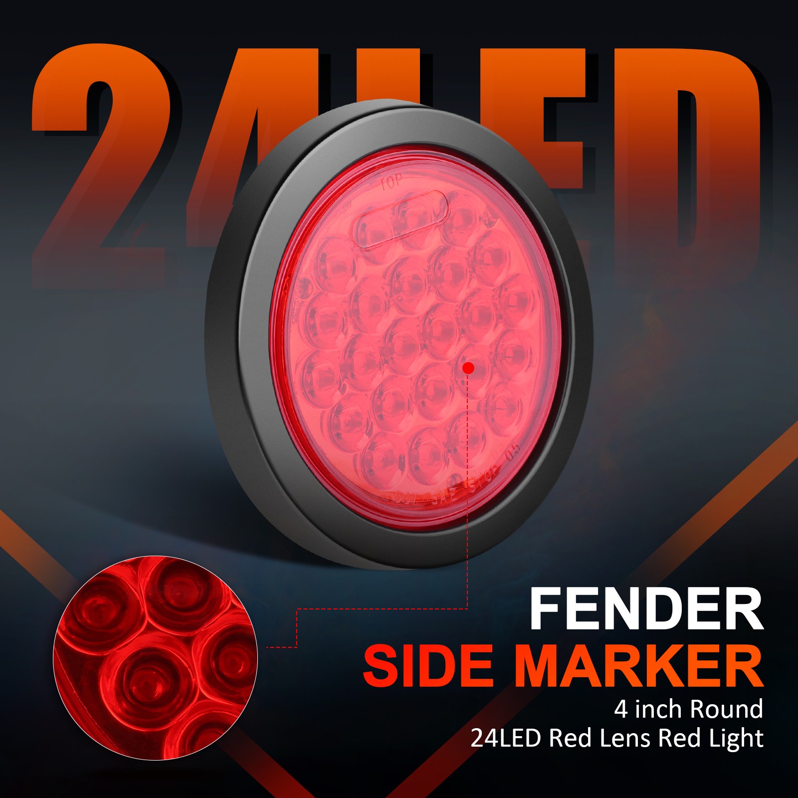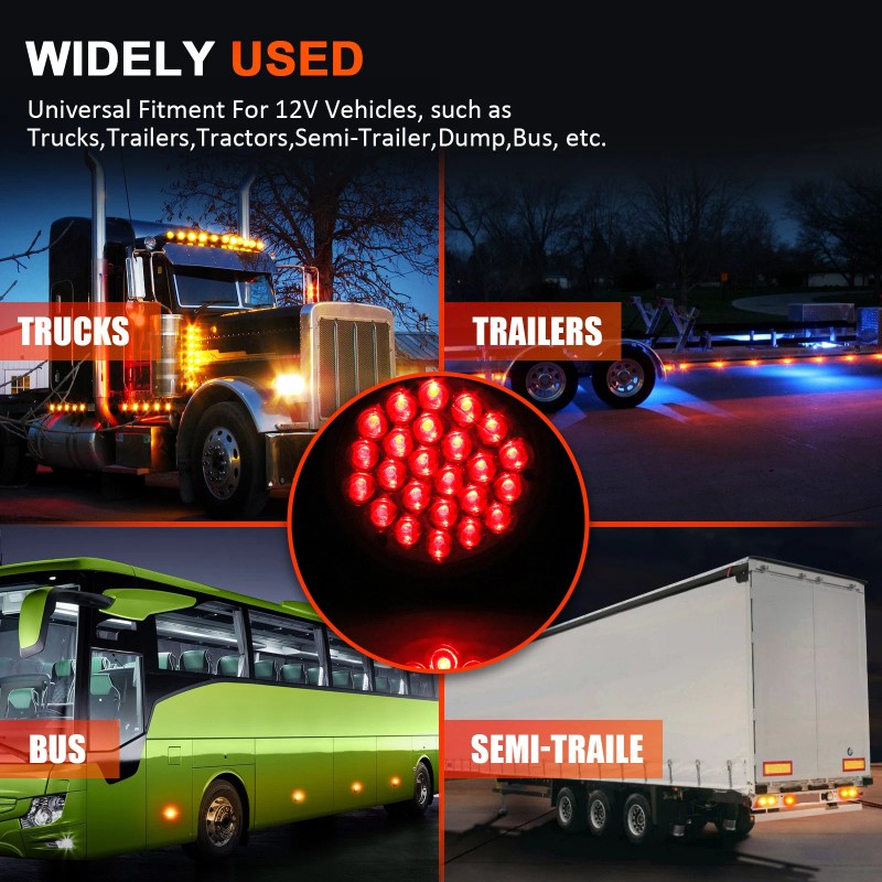 Package Includes: 2X Red 24LED Round Truck Tail Lights