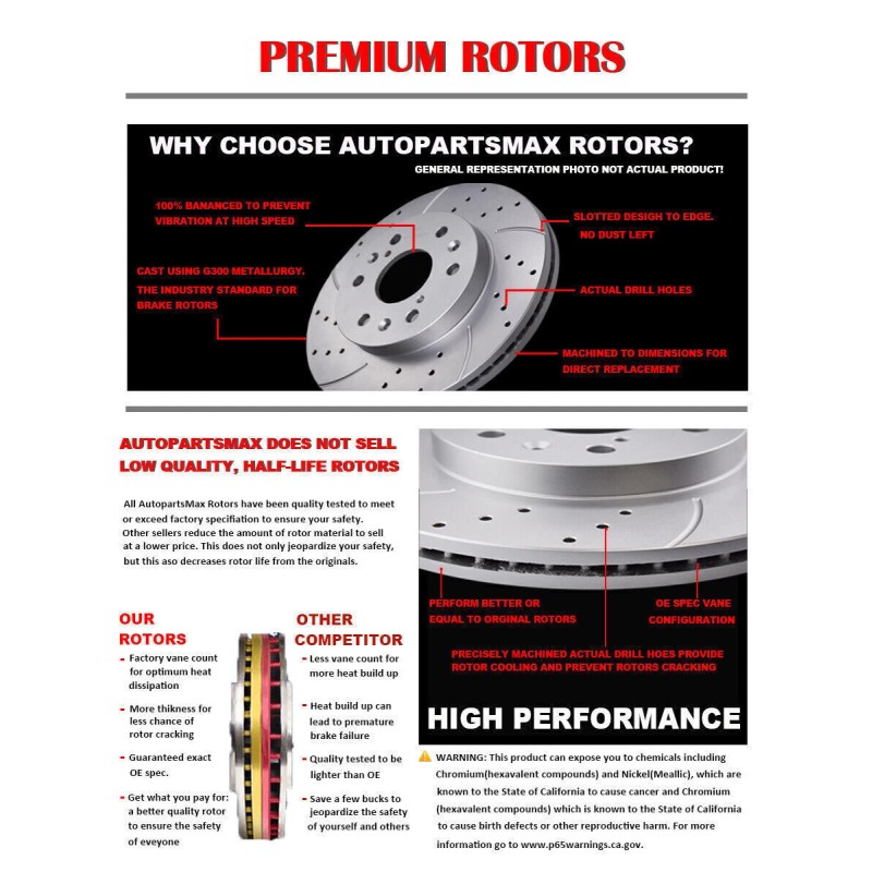 • Bundle Description: Drilled Slotted Front Brake Rotors and Ceramic Pads Kits