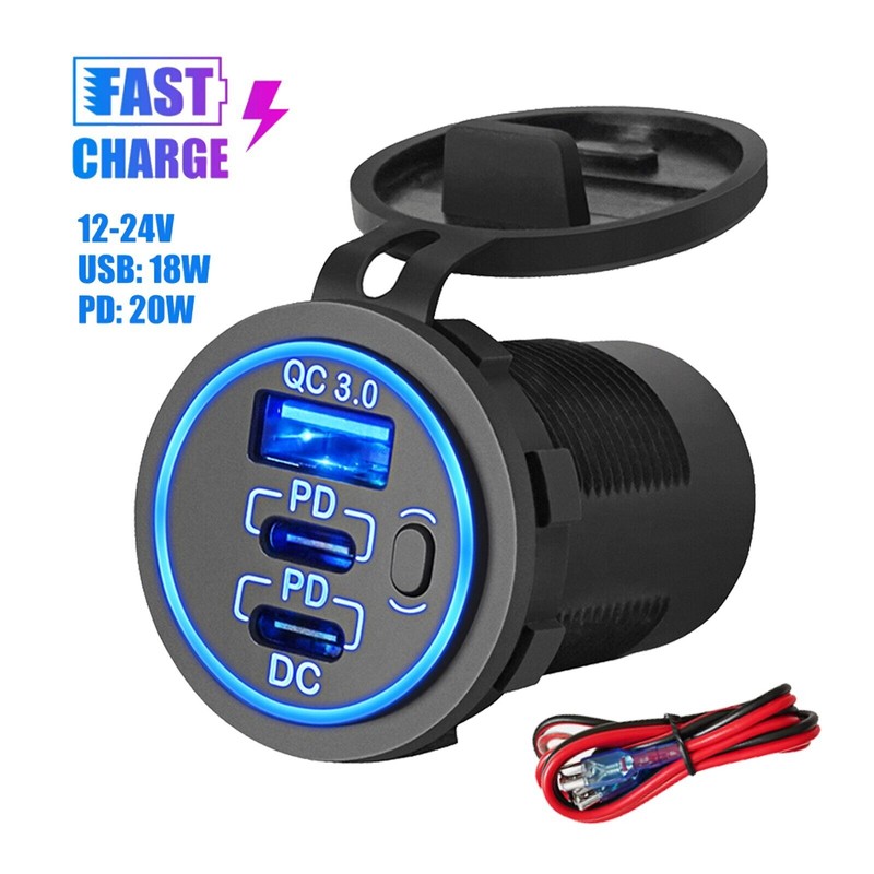 Autopher 3 Pack 12V USB C Outlet Wire Charger Multi Port Dual PD & QC3.0 Car Fast Charge