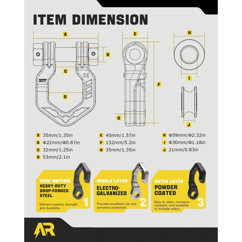 • Universal Fit & Recovery Ready –AUTORICH 3/4” d ring shackle, combined with the 7/8 pin designed for compatibility with a wide range of vehicles and gear, including SUVs, trucks, ATVs, UTVs, and recovery straps. The included rubber spacers help minimize rattling and wear, providing a snug fit and smooth operation when used as a D-ring shackle. Note: Please remove the rubber washers before using in snatch block mode to ensure optimal pulley performance