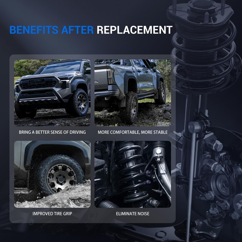 • QUALITY & UPGRADE - Autoround's Complete Strut and Coil Spring Assembly manufactured to OE specifications and ISO quality standards under the guidance of a professional OEM manufacturer, has upgraded corrosion protection that has more longer service life than the original strut shock absorbers. The high-strength steel body makes it more stable during operation. All products are factory-tested for Reliability, Durability, and Performance