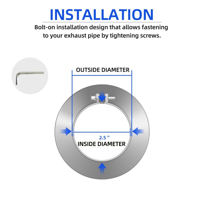 - Easy installation: the bolt/ clamp-on design (ONLY fastened, NO adjustable) makes it super easy to fasten to your exhaust pipe with M6 Allen Key, no drilling or welding needed