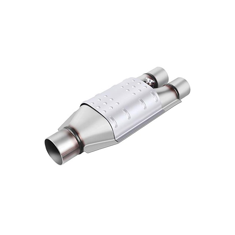 - Standard 2.5 inches inside diameter inlet and double 2 inches inside diameter outlets, 16 inches overall length, universal fit for vehicles with similar size exhaust pipe.