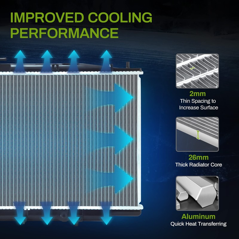- DIRECT FIT & HIGH EFFICIENCY: OE standard for easy installation; Our complete radiator is built with high density multi-louvered fins for maximum cooling efficiency, ensuring durability in extreme hot/cold weather