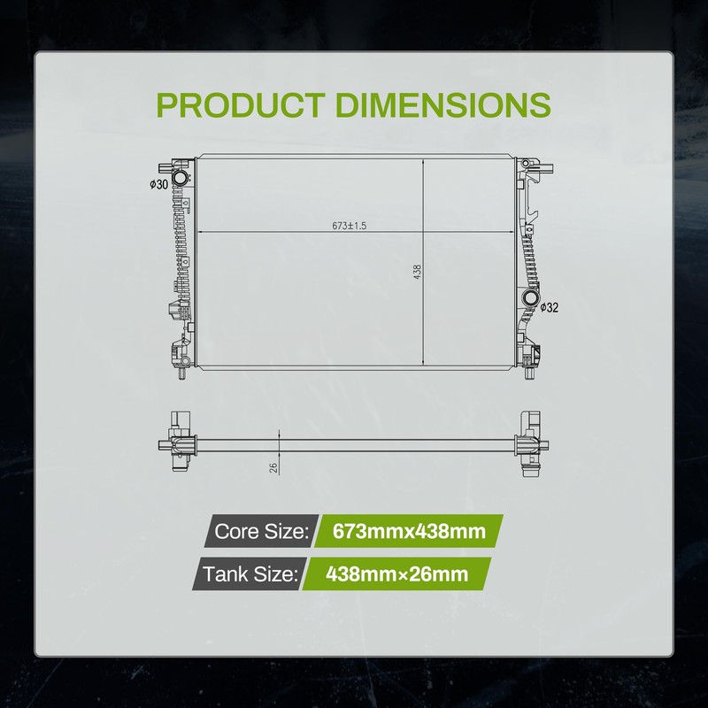 - LEAKPROOF MATERIAL: All products are subjected to leak tests, as the high-grade plastic tank & aluminum core are used in our radiators, which help ensure radiators' longevity