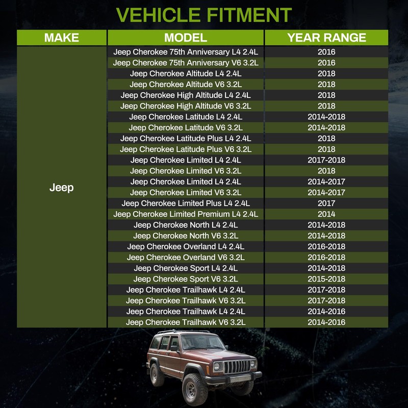 - Compatibility With-Radiator Compatible with: 2014-2018 Jeep Cherokee L4 2.4L V6 3.2L. Please confirm the compatible vehicles before ordering, thank you