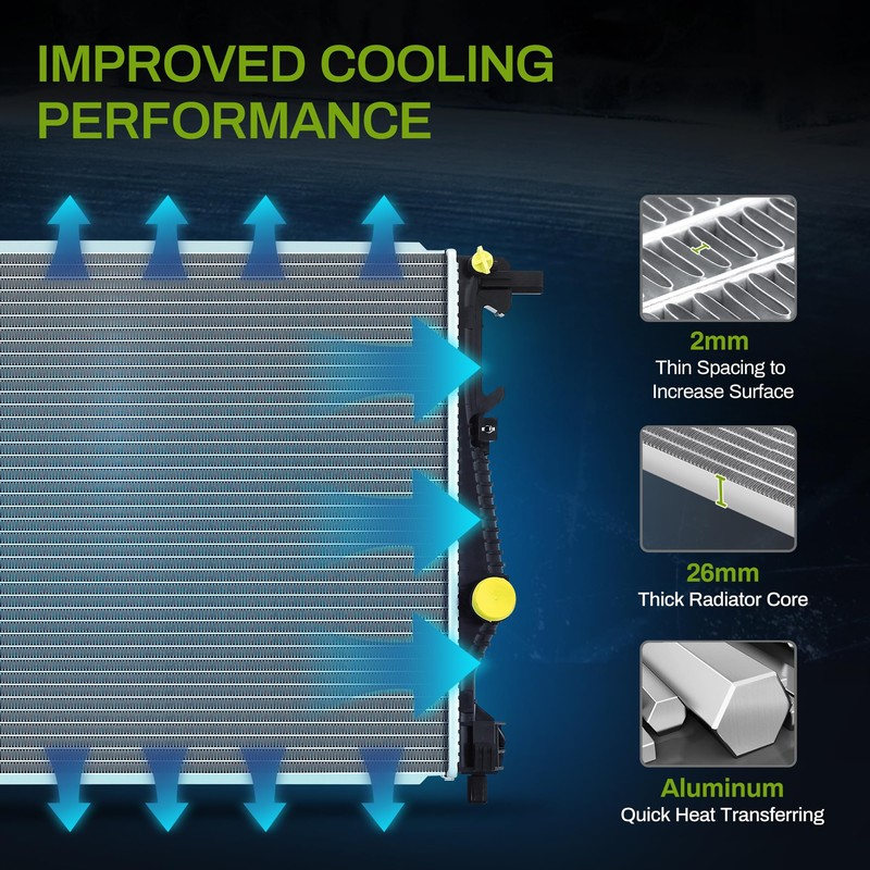- DIRECT FIT & HIGH EFFICIENCY: OE standard for easy installation; Our complete radiator is built with high density multi-louvered fins for maximum cooling efficiency, ensuring durability in extreme hot/cold weather