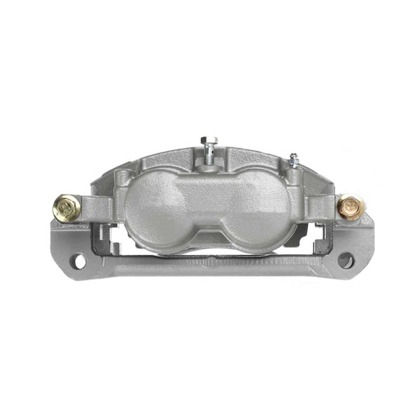 • Front driver side disc brake caliper assembly. This caliper has a silver zinc plating that prevents rust from forming. Comes with banjo bolts, copper washers, pad clips, guide pins and bleeder screws