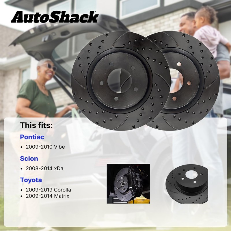 AutoShack Pair of 2 Front NightGuard Coated Drilled Slotted Black Brake Rotors Driver and Passenger Side Replacement for Pontiac Vibe Toyota Matrix 2009-2019 Corolla 2008-2014 Scion xD PR41507DSBPR