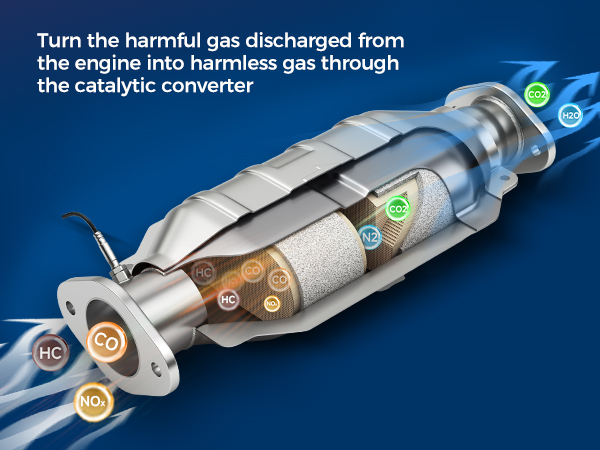 Converts toxic gases and pollutants in exhaust gas from an internal combustion engine into less-toxic pollutants